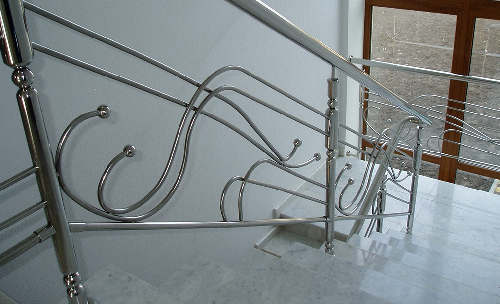 К бюджетным вариантам относят ограждения из нержавеющей стали с 2-5 ригелями. Такие конструкции чаще всего используются для лестниц и для обустройства крылец или лестничных маршей. Конструкция обладает повышенной безопасностью, надёжностью. Особенности крепления ригелей способствуют адаптации ограждения к любому варианту дизайна.