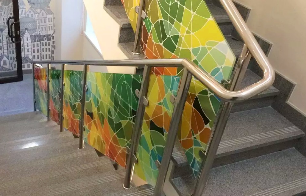 Ограждения с витражом используются внутри помещений, хотя могут применяться под навесами, на открытом воздухе.