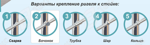 Для создания наиболее привлекательного вида и идеального дизайна, ригели могут фиксироваться к стойкам разными способами: