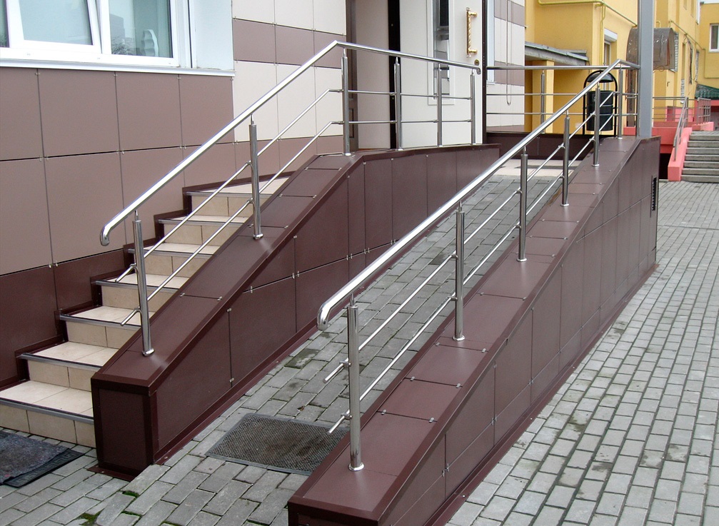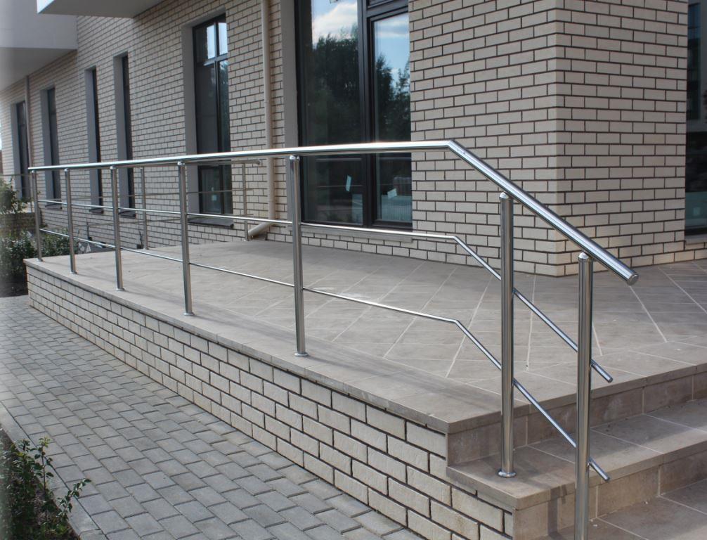 Ограждения из стали - необходимый элемент для установки на въездных пандусах, за счет их функции обеспечить удобство и безопасность при передвижении детских и инвалидных колясок. Без таких элементов не обходится крыльцо  санатория, медицинского центра, дом инвалидов и другие здания, которые посещают пожилые люди и люди с ограниченными способностями.