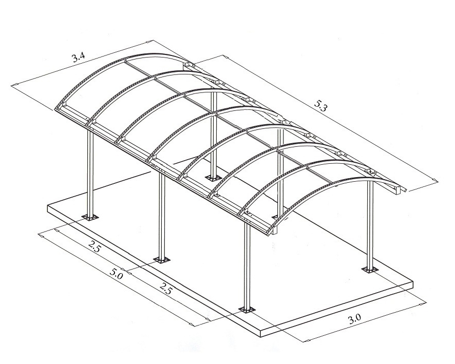 Поликарбонатное полотно пластично и даёт большой радиус округления. По этой причине конструкция может иметь произвольную форму, но, как правило, это формы: