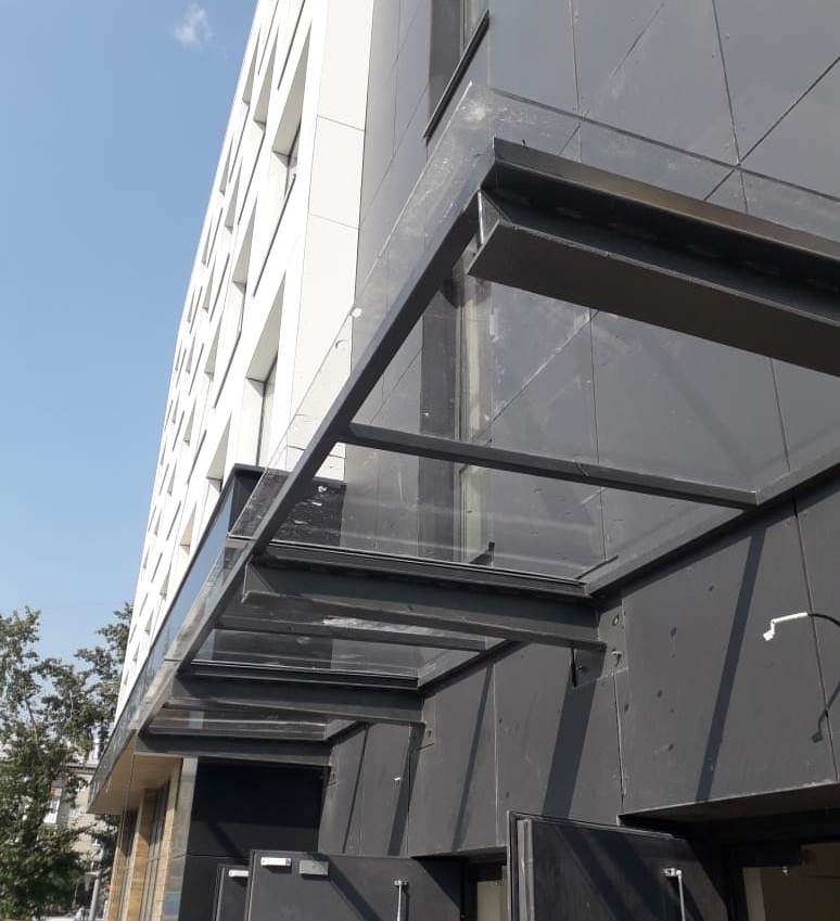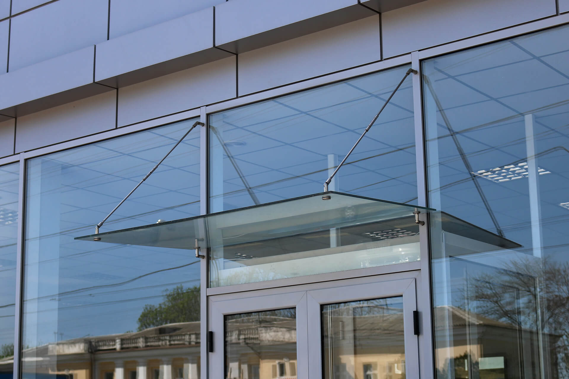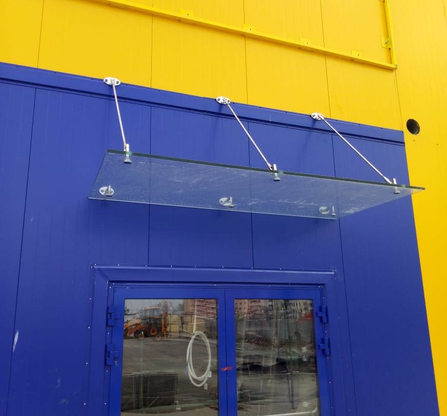 Козырьки из закалённого стекла и стекла триплекс на вантах или на металлическом каркасе