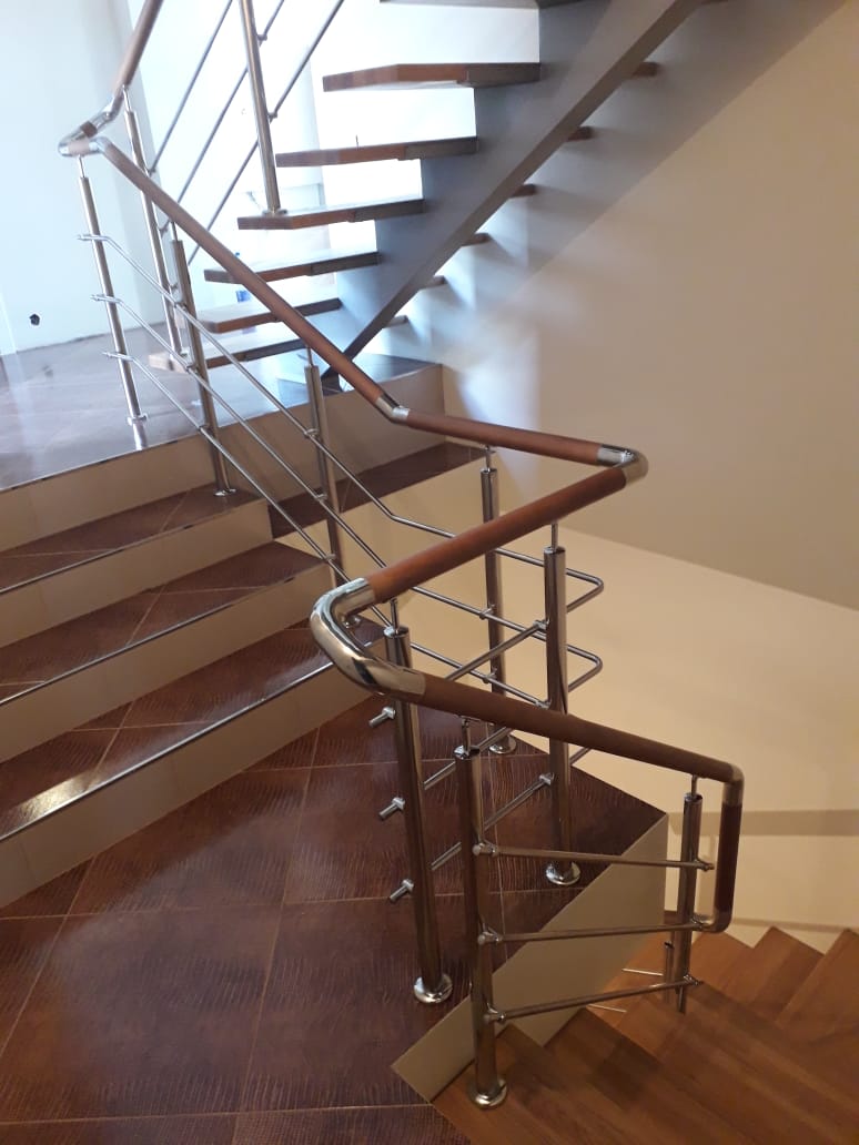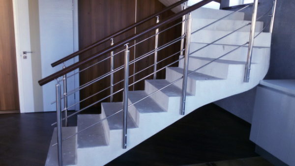 - Поручни – горизонтальная перекладина, с которой непосредственно контактирует человек, при спуске или подъеме по лестнице. В целях безопасной эксплуатации к ним предъявляются повышенные требования – безупречная гладкость, целостность, тактильное удобство.