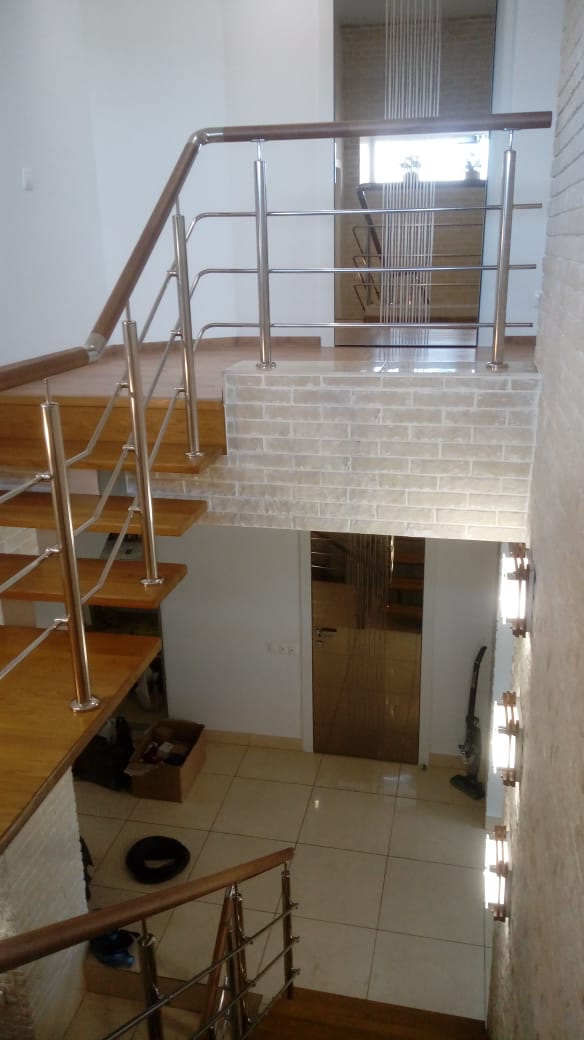 - Заполнение – горизонтальные или вертикальные ригели из нержавейки между стойками. Количество их зависит от пожелания заказчика. Также между стойками можно использовать стекло.