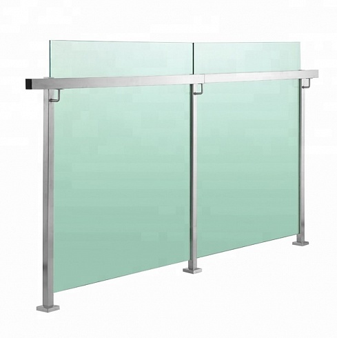 Ограждения из стекла встречаются в Торговых и Бизнес-центрах. Они состоят из поручня, металлического профиля и стекла. Для создания ограждения используется триплекс повышенной прочности. Его ширина может составлять 12, 16, 20 мм. Использование стекла позволяет не только увеличить количество света в пространстве, но и обеспечить безопасность людей и их личных вещей. По желанию заказчика на стекло может быть нанесён матовый узор.