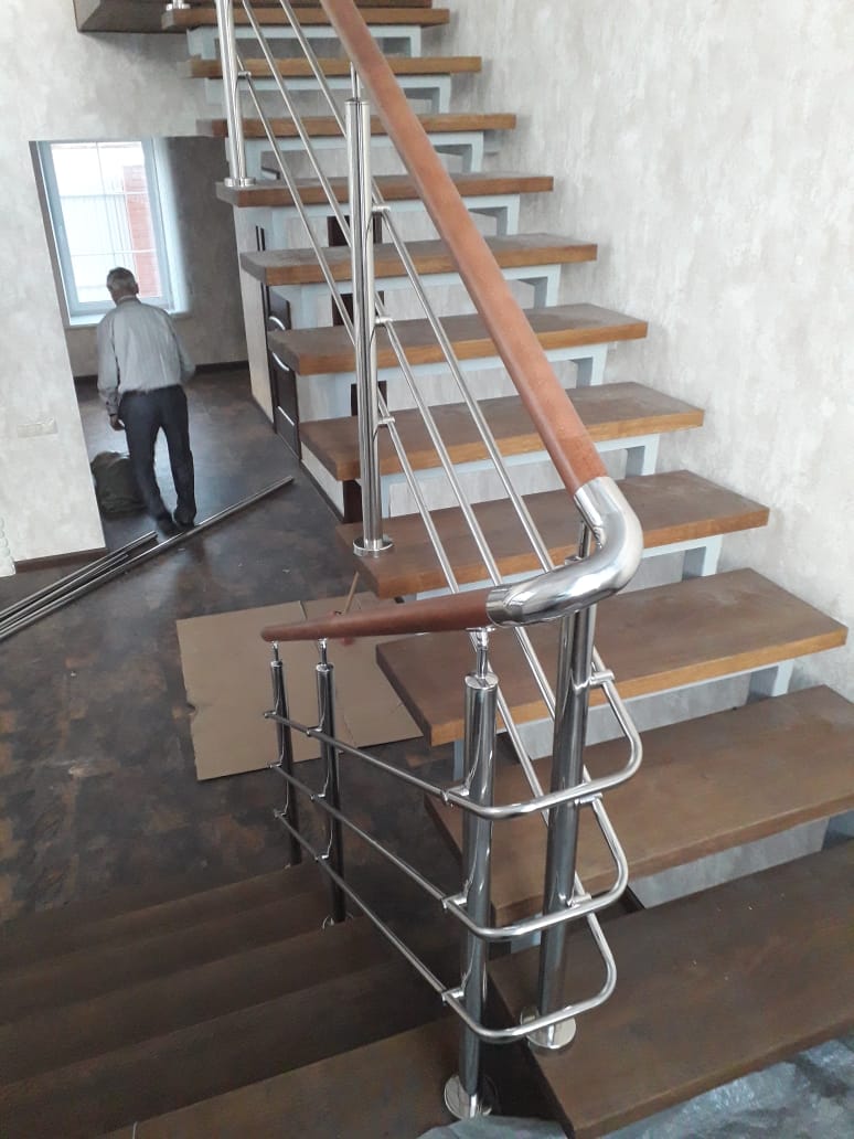 Выполнены работы по изготовлению и монтажу ограждений, с деревянным поручнем. Ограждения смонтированы с помощью декоративной фурнитуры.