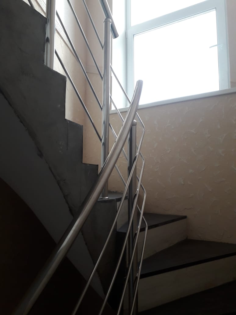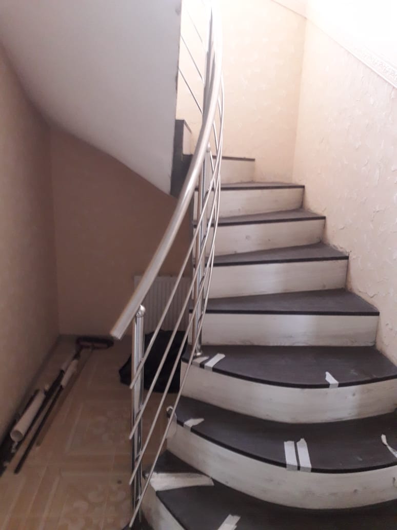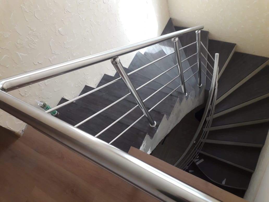 Выполнены работа по изготовлению и монтажу ограждений для частного дома. На первых ступенях ограждения с радиусом. Между этажами, решили с заказчиком не делать резкий подъем поручня вверх, а просто закруглить поручень и поставить заглушки. А вот заполнения оставили для безопасности.
