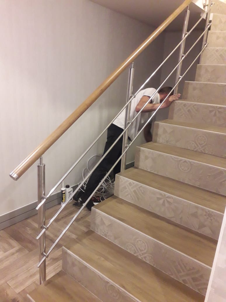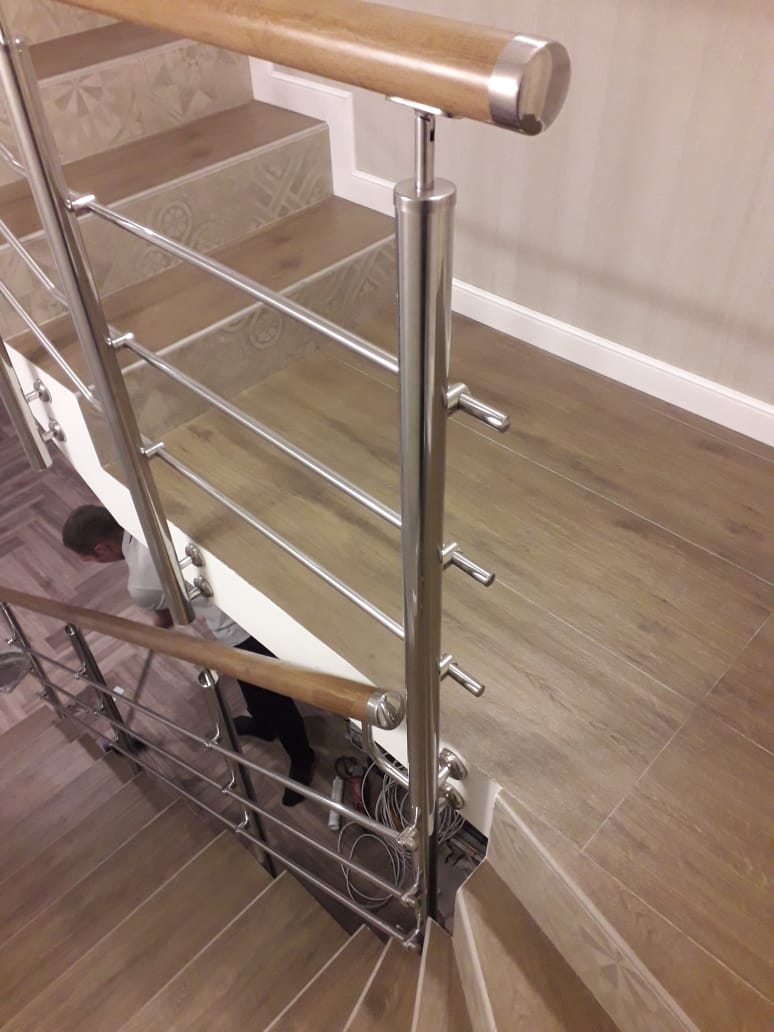 Мы установили лестничные перила с деревянным поручнем в частном доме, пос. Курганово