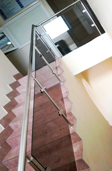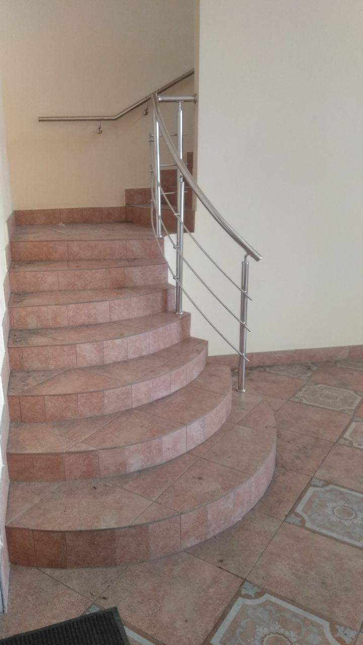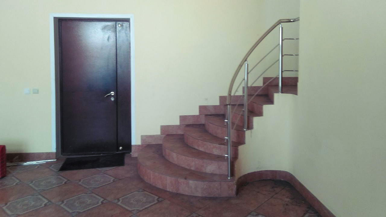 В Арамиле, в офисном здании, нужно было установить радиусное ограждение, ограждение лестницы со стеклом и пристенный поручень! Объект интересен именно радиусным ограждением.