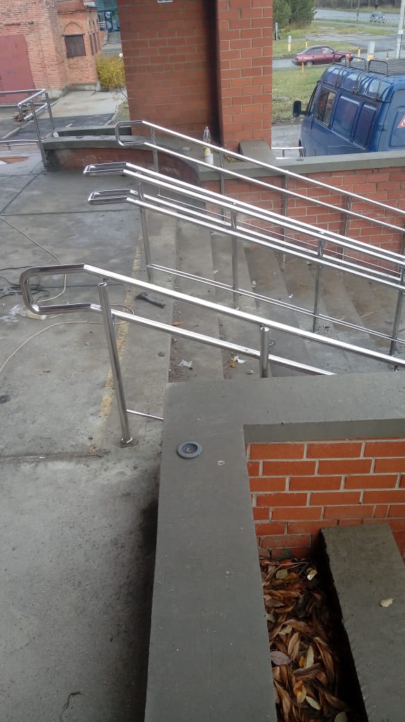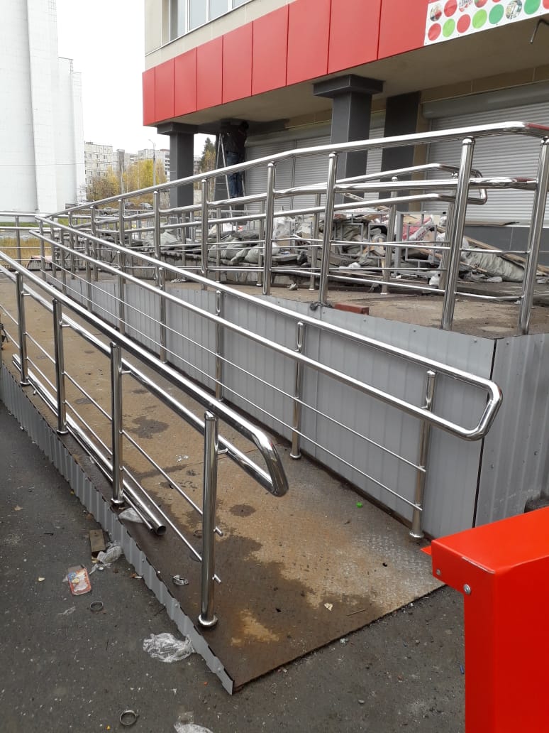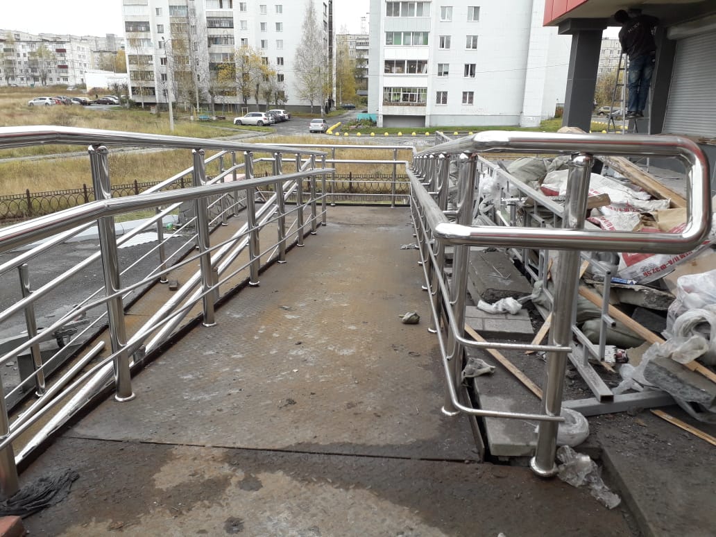 Ограждения для магазина "Пятерочка" в г. Качканаре. Выполнена установка ограждений по пандусу и крыльцам.