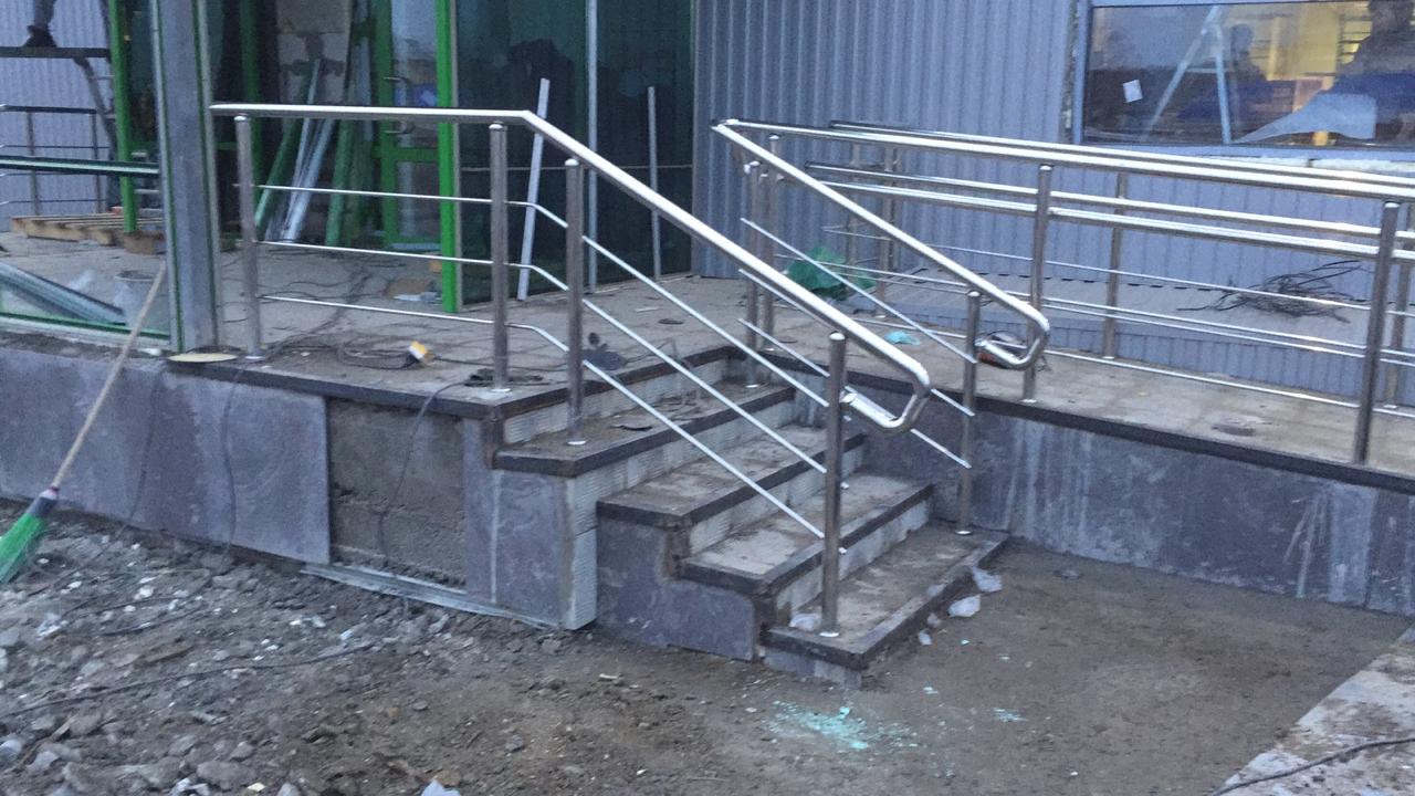 Ограждения для магазина "Пятерочка" в c. Покровское, г. Каменск-Уральский. Выполнена установка ограждений по пандусу и крыльцам, а так же работы по установке отбойников в торговом зале.