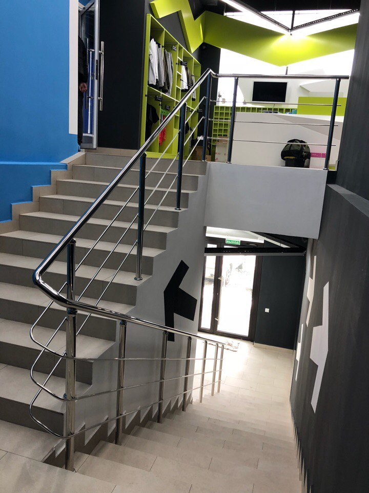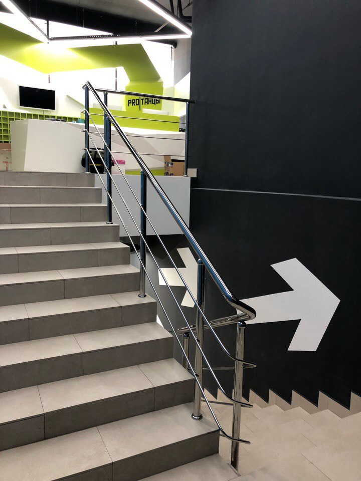 Ограждение для новой танцевальной школы. 6-7 апреля состоялось долгожданное открытие Танцевального Центра PROТАНЦЫ, нами были установлены ограждения на лестничной клетке и поставлены ручки из нержавеющей стали на профильные двери.