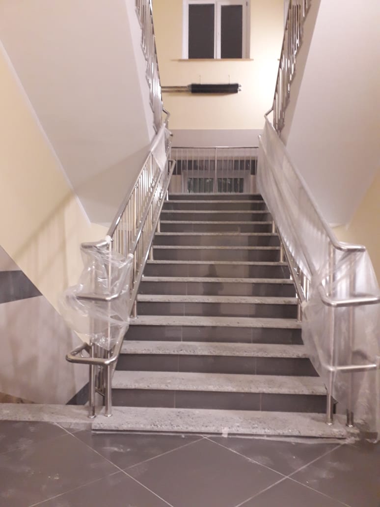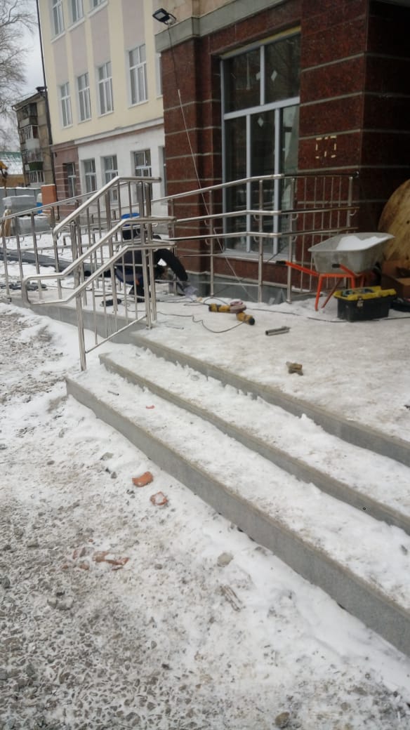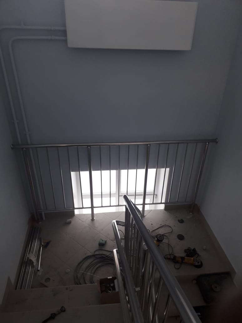 Выполнен большой комплекс работ по установке ограждений лестниц, входных групп, кровли и крылец. Работы проходили в несколько этапов.