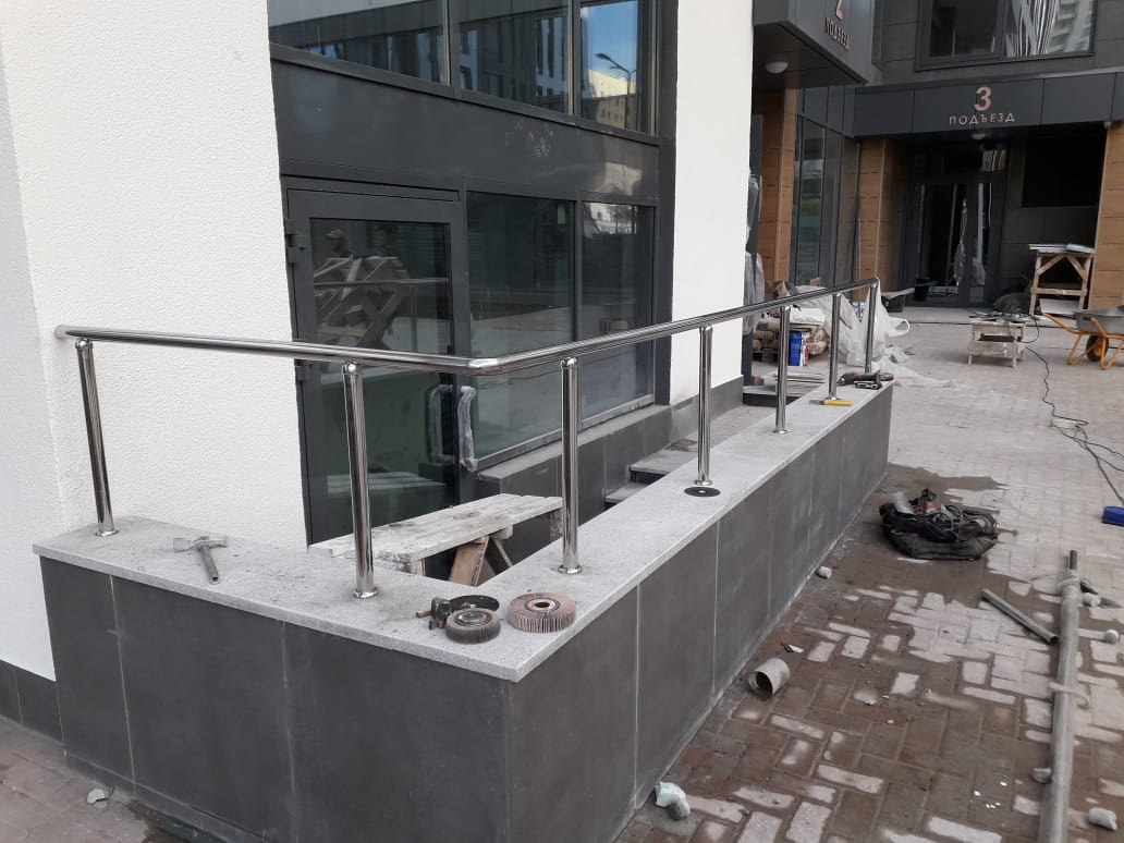 Ведется комплекс работа по изготовлению и монтажу лестничных, оконных ограждений, а так же ограждений пандусов и входных групп. Объект г. Екатеринбург, ЖК "Армада"