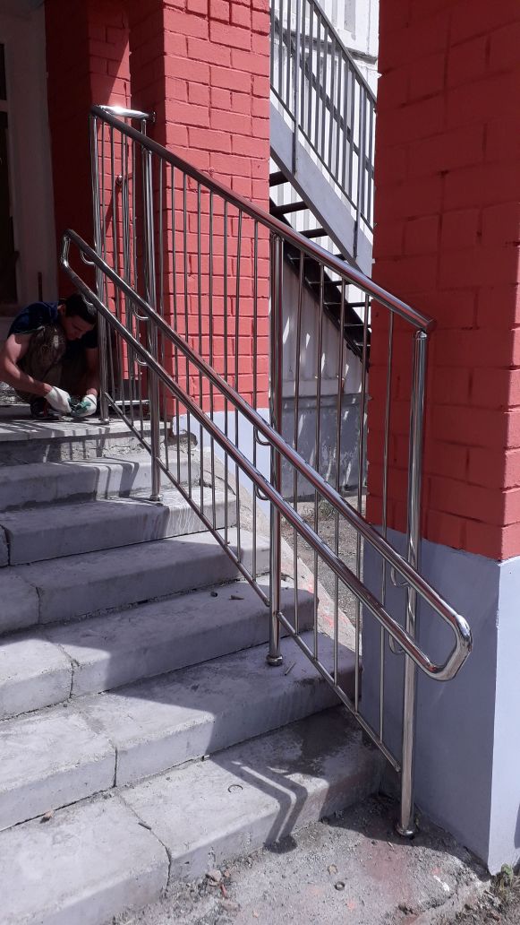 Делали ограждения лестничной клетки и площадке в детском саду и крыльца в школе.