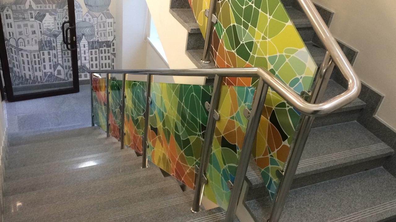 Выполнен комплекс работ по установке ограждений для клиники. На объекте присутствует 3 вида ограждений: ограждение с заполнением из закаленного стекла (нанесение фотопечати), ограждения с радиусным заполнением, ограждение с 5-ю ригелями, а так же пристенный поручень.